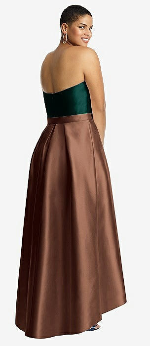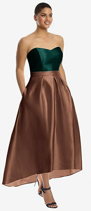 Bateau Neck Satin High Low Cocktail Dress in cognac