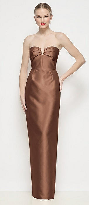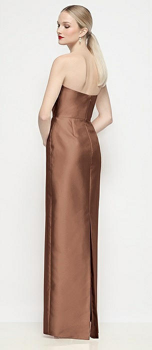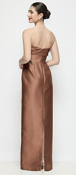Strapless Pleated U-Wire Satin Column Maxi Dress in cognac