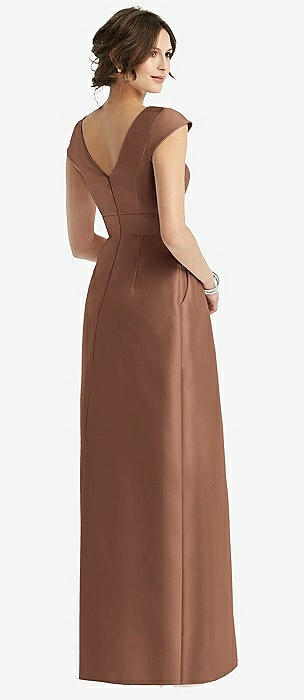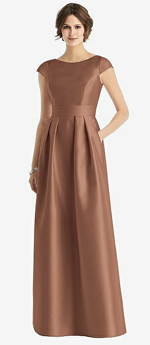 Cap Sleeve Pleated Cocktail Dress with Pockets in cognac