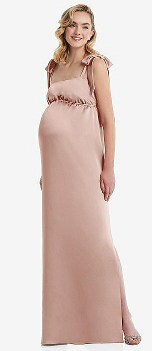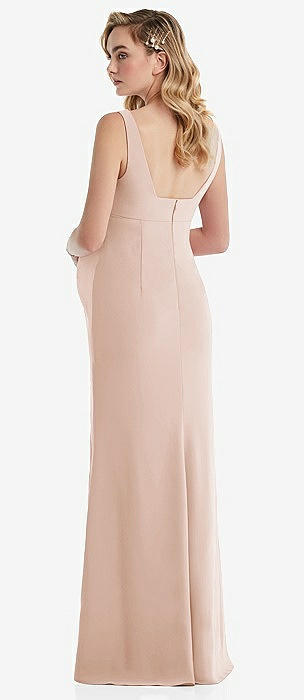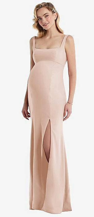 Wide Strap Square Neck Maternity Trumpet Gown in cameo