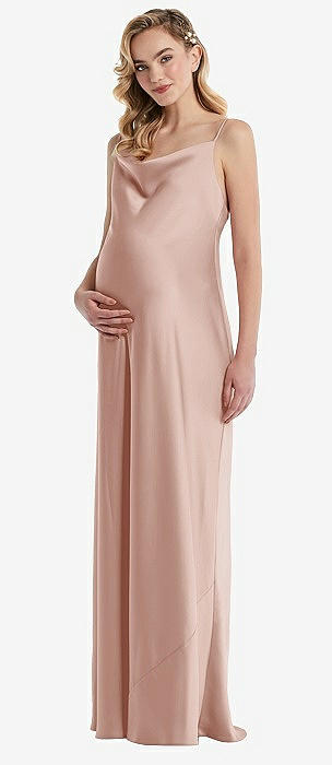 Cowl-Neck Tie-Strap Maternity Slip Dress in toasted sugar