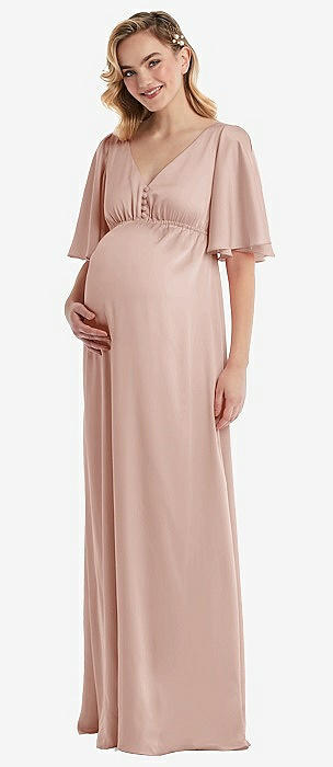 Flutter Bell Sleeve Empire Maternity Dress in toasted sugar