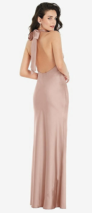 Scarf Tie High-Neck Halter Maxi Slip Dress in toasted sugar
