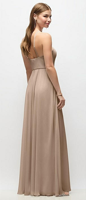 Cowl-Neck A-Line Maxi Dress with Adjustable Straps in toasted sugar