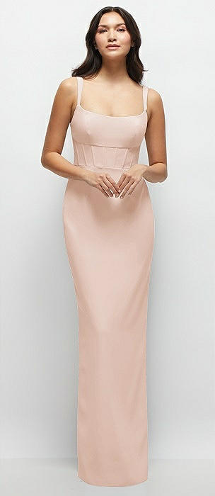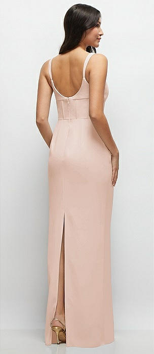 Corset-Style Crepe Column Maxi Dress with Adjustable Straps in cameo