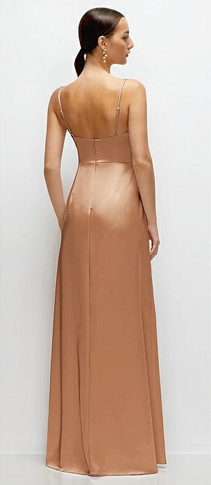 Cowl Neck Satin Maxi Dress with Adjustable Spaghetti Straps in toffee
