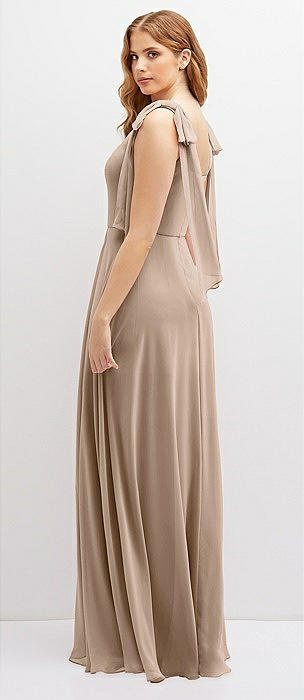 Bow Shoulder Square Neck Chiffon Maxi Dress in topaz