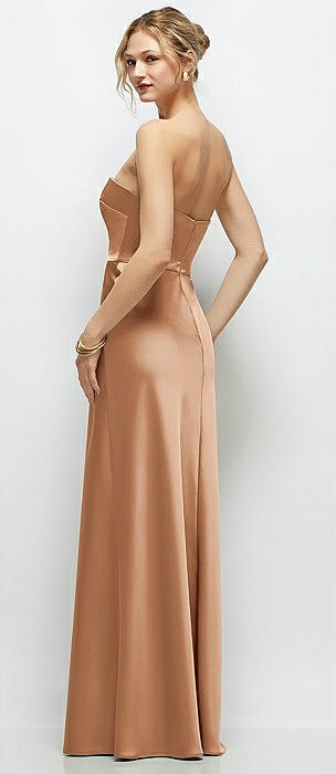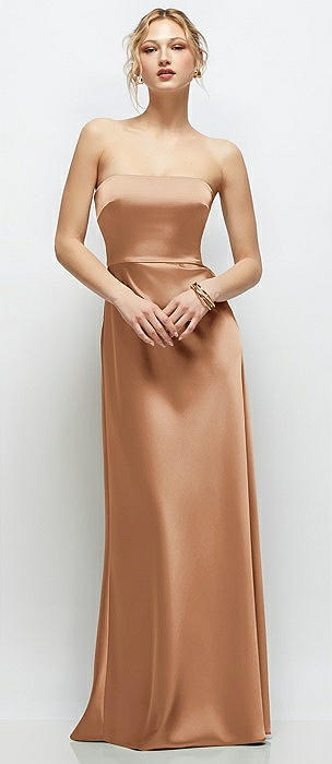 Strapless A-Line Stretch Satin Maxi Dress in toffee