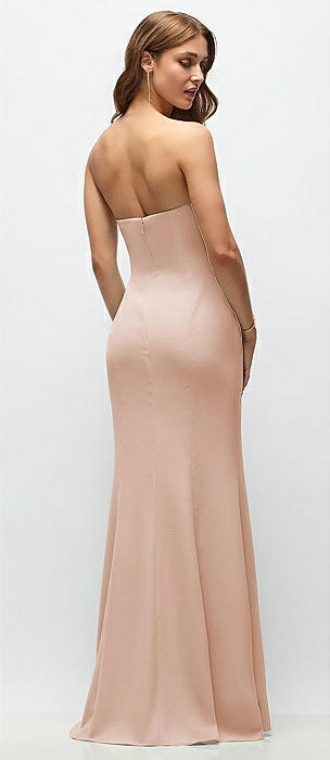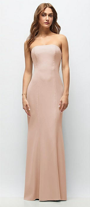 Strapless Fit and Flare Crepe Maxi Dress in cameo