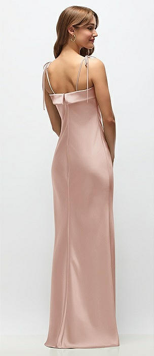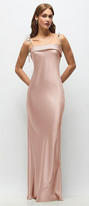 Cuff Neck Satin Bias Maxi Dress with Self-Tie Spaghetti Straps in toasted sugar