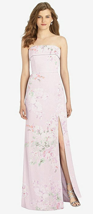 Strapless Pleated Faux Wrap Trumpet Gown with Front Slit in powder pink
