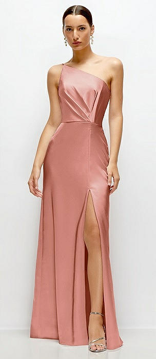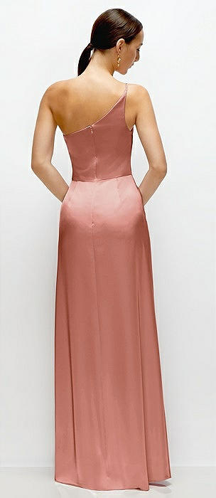 Pleated One-Shoulder Satin Maxi Dress with A-Line Skirt in desert rose