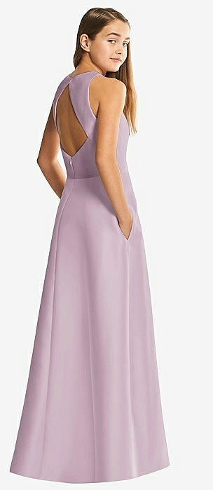 Floral Sleeveless Open-Back Satin Junior Bridesmaid Dress in cottage rose larkspur