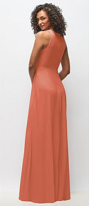Deep V-Neck Chiffon Maxi Dress in terracotta copper