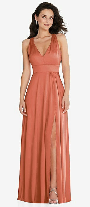 Tie-Back Cutout Trumpet Gown with Front Slit in terracotta copper