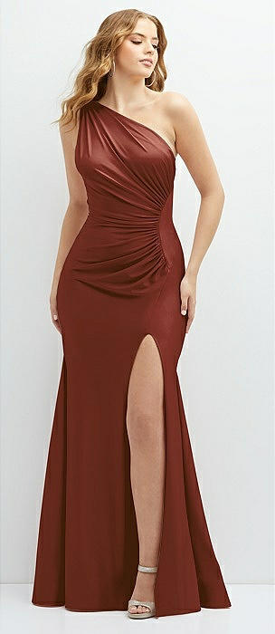 Asymmetrical Open-Back One-Shoulder Stretch Satin Mermaid Dress in auburn moon