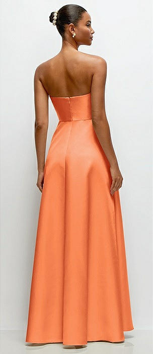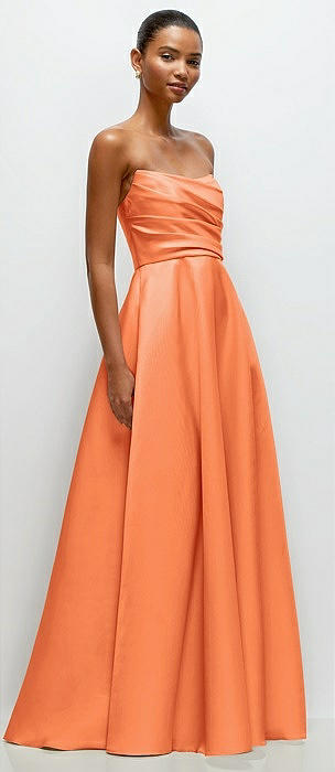 Strapless Draped Cat-Eye Satin Maxi Dress with Full Skirt in portofino orange