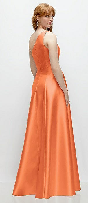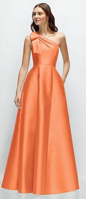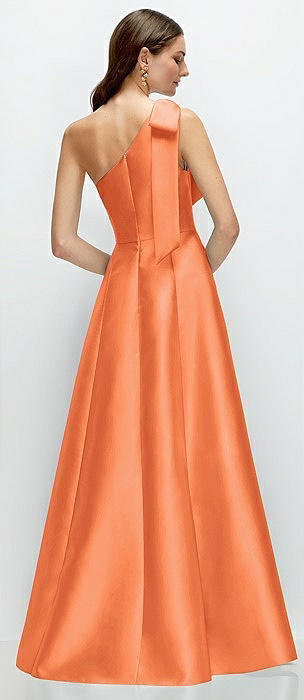 Bow One-Shoulder Full A-Line Satin Maxi Dress in portofino orange