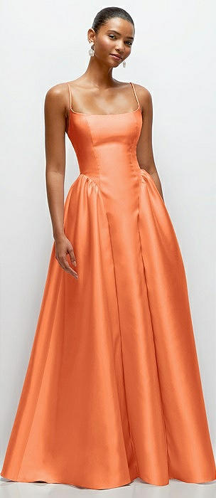 Scoop Neck Drop Basque Skirt Satin Maxi Dress with Pockets in portofino orange