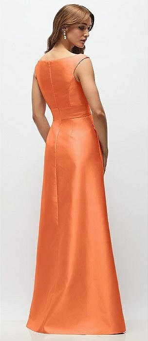 Basque-Neck Strapless Satin Gown with Mini Sash in portofino orange