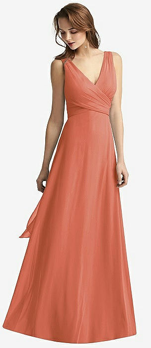 Sleeveless V-Neck Chiffon Wrap Dress in terracotta copper