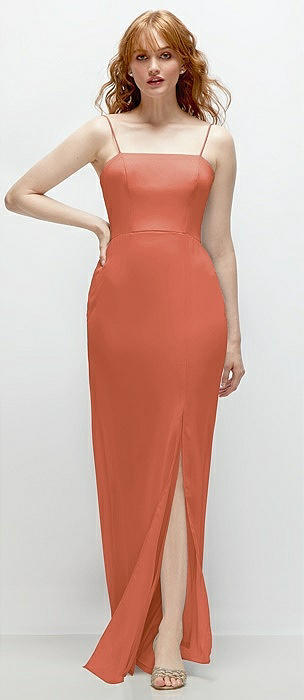 Tie-Back Cutout Trumpet Gown with Front Slit in terracotta copper