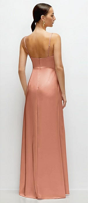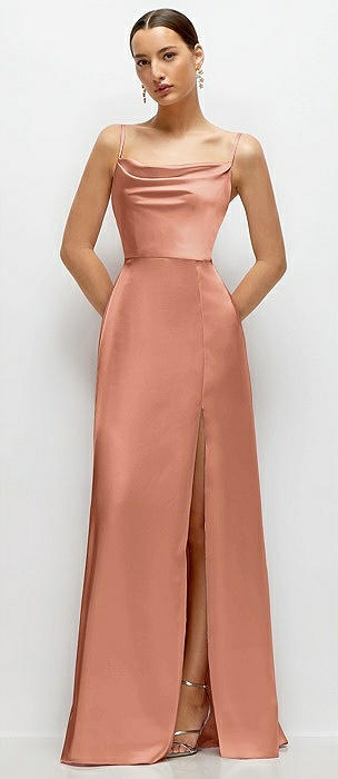 Cowl Neck Satin Maxi Dress with Adjustable Spaghetti Straps in copper penny