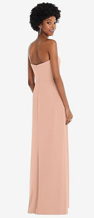 Strapless Pleated Faux Wrap Trumpet Gown with Front Slit in auburn moon