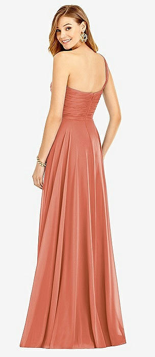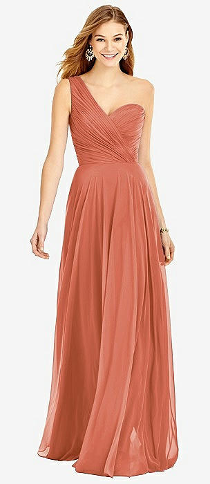One-Shoulder Draped Chiffon Maxi Dress - Dani in terracotta copper