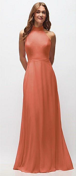 High Neck Halter Backless Maxi Dress in terracotta copper