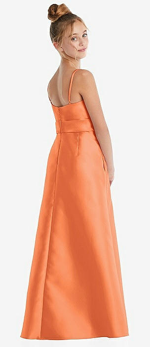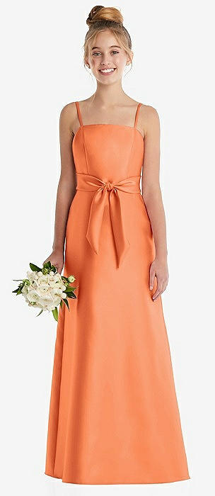 Spaghetti Strap Satin Junior Bridesmaid Dress with Mini Sash in portofino orange
