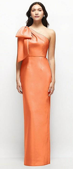 Bow One-Shoulder Satin Maxi Dress with Trumpet Skirt in portofino orange