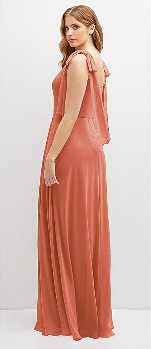Bow Shoulder Square Neck Chiffon Maxi Dress in terracotta copper