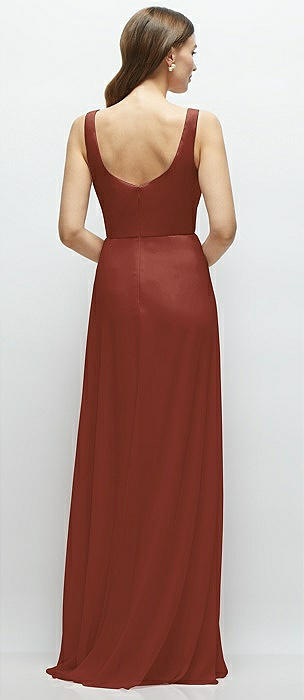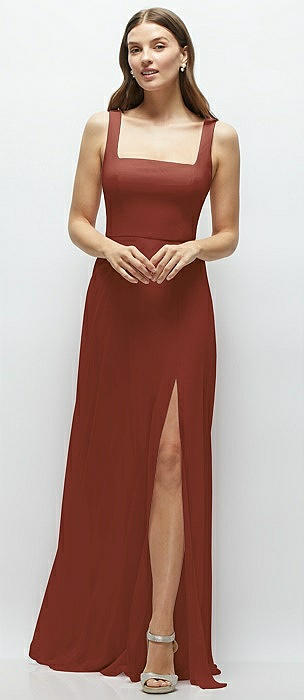 Square-Neck Satin A-line Maxi Dress with Front Slit in auburn moon