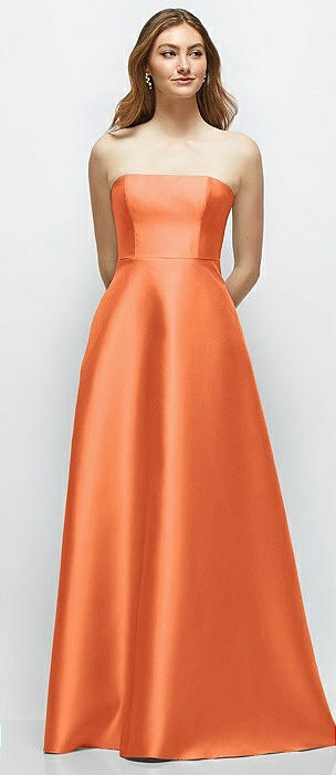Strapless Satin Drop Waist Gown with Full Skirt in portofino orange