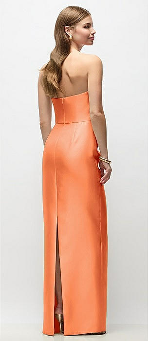 Strapless Cuff Satin Maxi Dress with Column Skirt & Back Bow in portofino orange