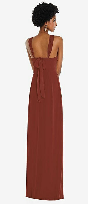 Tie-Back Cutout Trumpet Gown with Front Slit in auburn moon