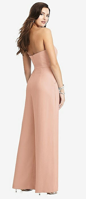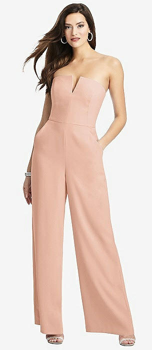 Strapless Notch Crepe Jumpsuit with Pockets in pale peach