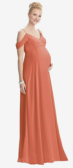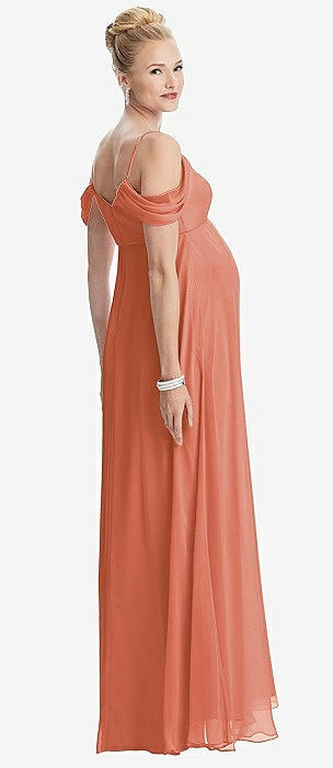 Draped Cold-Shoulder Chiffon Maternity Dress