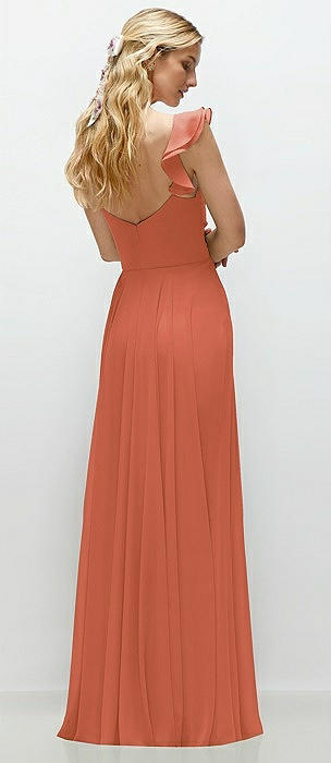 Dramatic Ruffle Edge Strap Chiffon Maxi Dress in terracotta copper