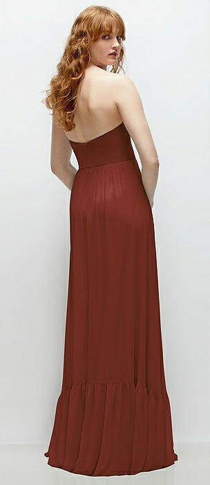 Strapless Chiffon Maxi Dress with Tiered Micro Ruffle Full Skirt in auburn moon