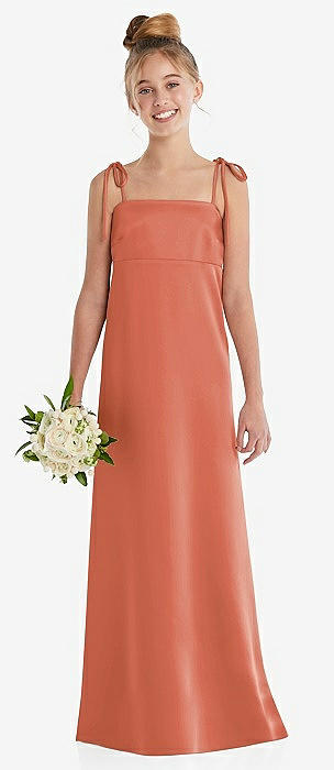 Tie Shoulder Empire Waist Junior Bridesmaid Dress in terracotta copper