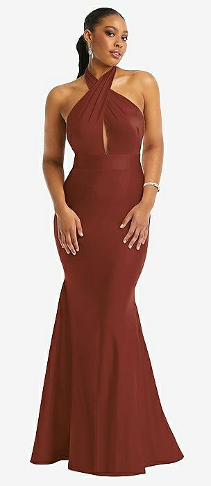 Criss Cross Halter Open-Back Stretch Satin Mermaid Dress