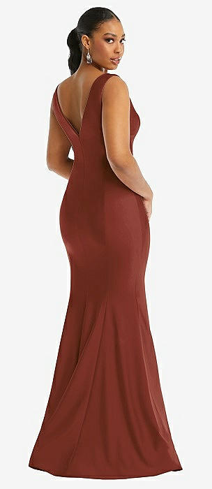 Notch Crepe Trumpet Gown with Front Slit in auburn moon