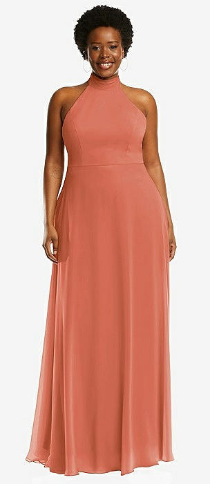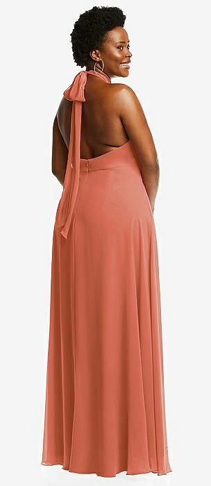 High Neck Halter Backless Maxi Dress in terracotta copper