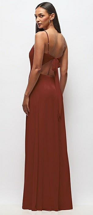 High Cowl Neck Open-Back Stretch Satin Bias Maxi Dress in auburn moon