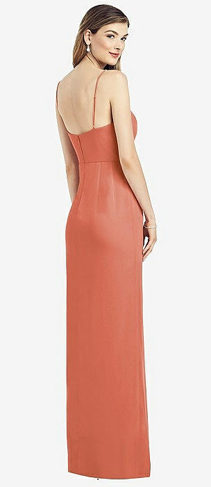 Spaghetti Strap Draped Skirt Gown with Front Slit in terracotta copper
