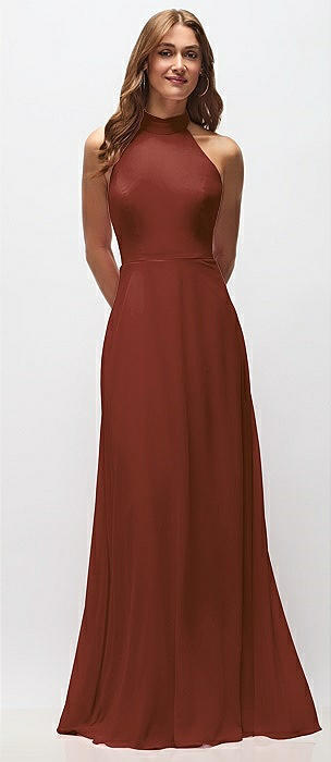 High Neck Halter Backless Maxi Dress in auburn moon