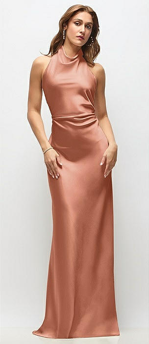 High Cowl Neck Open-Back Stretch Satin Bias Maxi Dress in copper penny