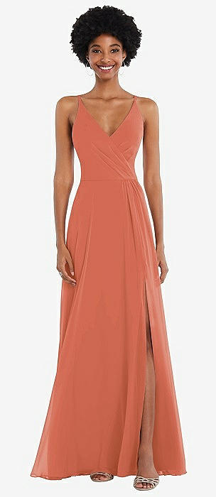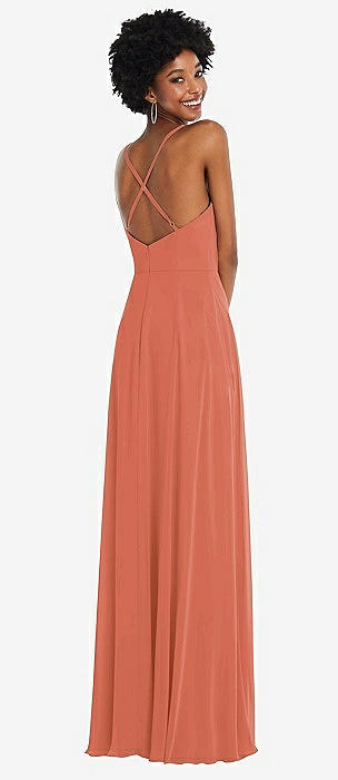 Faux Wrap Criss Cross Back Maxi Dress with Adjustable Straps in terracotta copper
